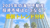 ここでは、海外不動産投資における最新の動向を取り上げ、注目すべき対象地域や主要市場の変化、2025年度に予定されている税制改正の影響、多様化する投資手法について解説します。これらの要素が投資戦略にどのように影響を与えるのか、今後の投資計画に役立つ情報を提供します。